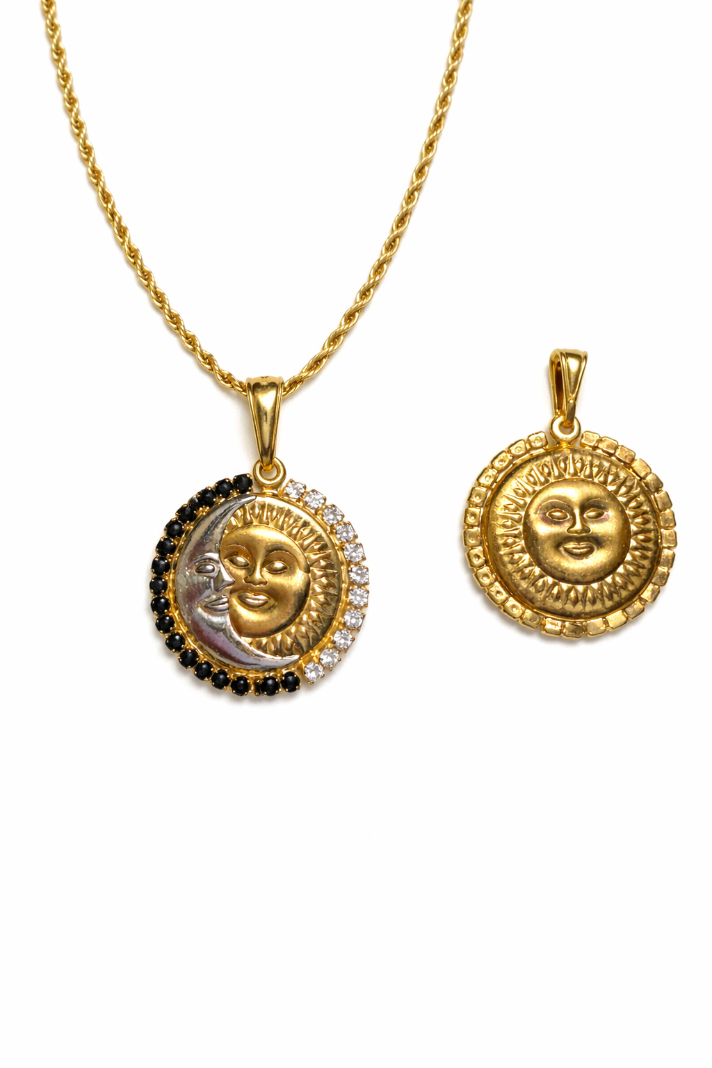 Reversible mixed metal sun/moon pendant