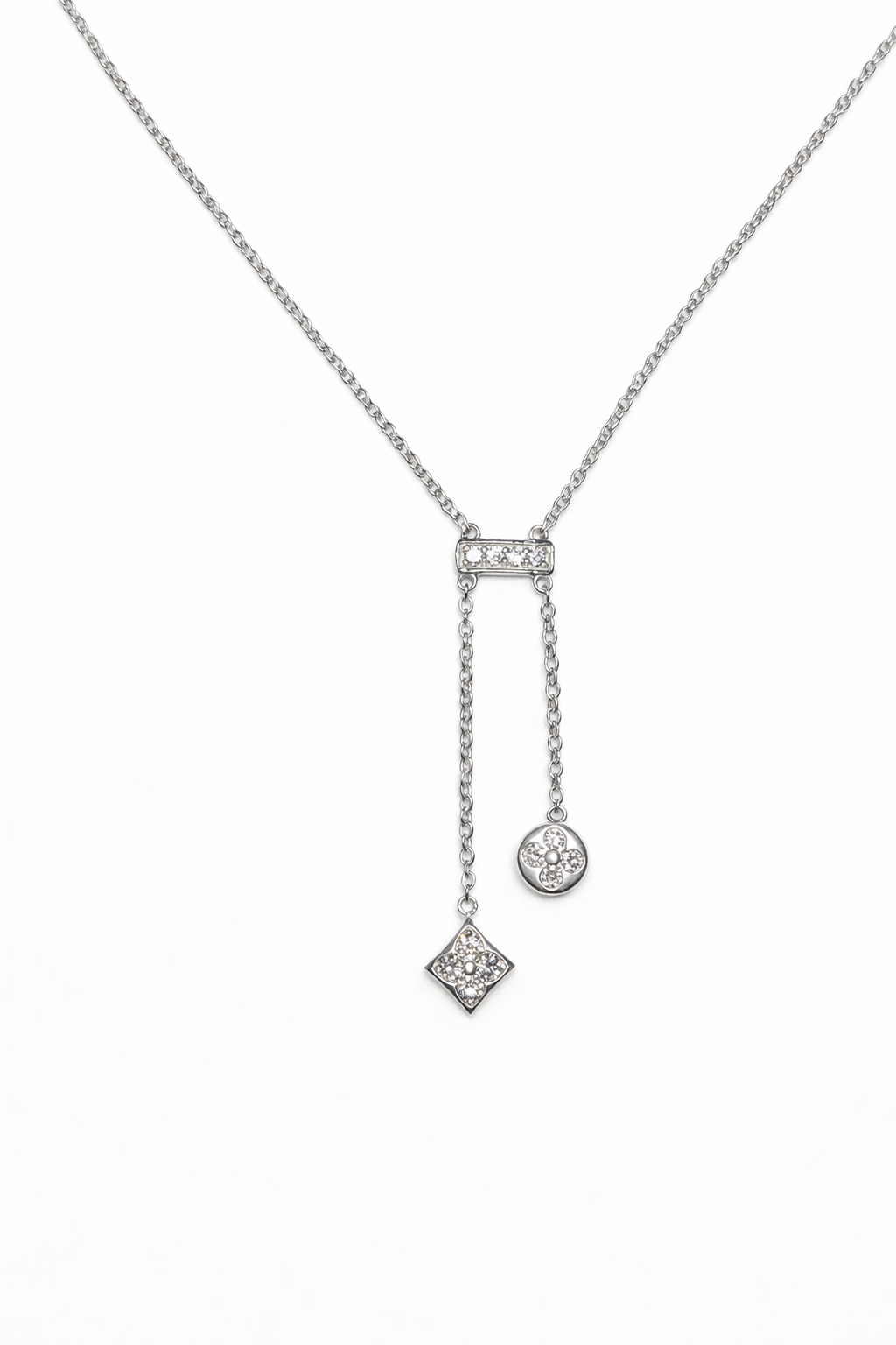 Diamond Drop Lariat Necklace – Sterling Silver